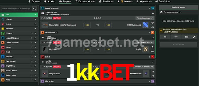 O 1kkbet oferece uma grande seleção de opções de apostas em e-sports com probabilidades competitivas